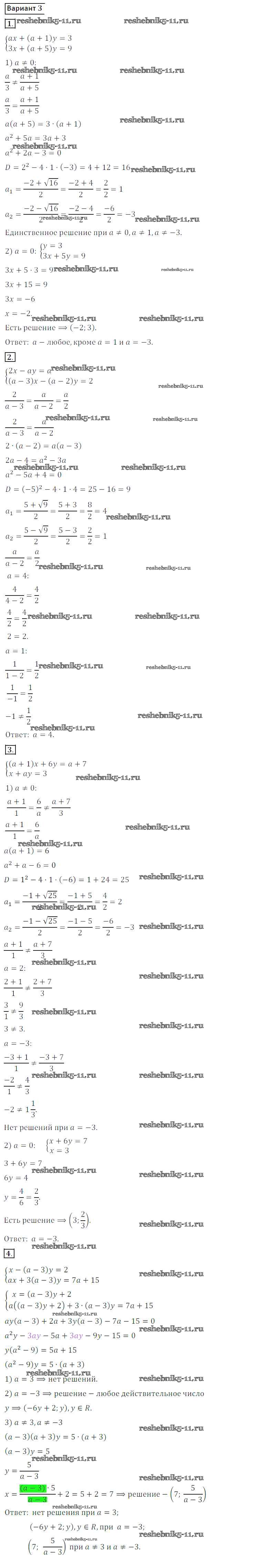 Готовая домашняя работа с ответами по Алгебре за 8 класс Потапов, Шевкин Дидактические материалы МГУ - школе Просвещение 2017 ФГОС - СР №24. Системы линейных уравнений с параметром вариант 3