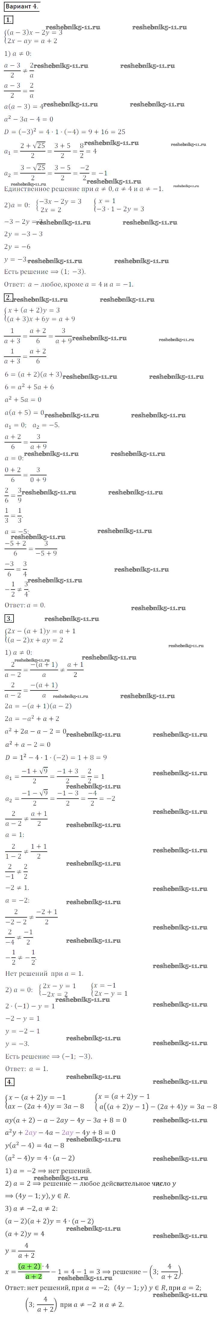 Готовая домашняя работа с ответами по Алгебре за 8 класс Потапов, Шевкин Дидактические материалы МГУ - школе Просвещение 2017 ФГОС - СР №24. Системы линейных уравнений с параметром вариант 4
