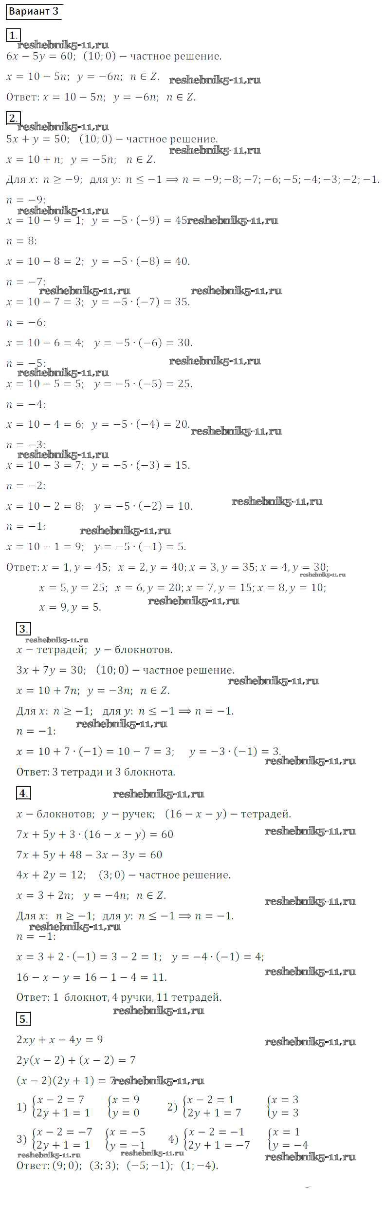 Готовая домашняя работа с ответами по Алгебре за 8 класс Потапов, Шевкин Дидактические материалы МГУ - школе Просвещение 2017 ФГОС - СР №26. Решение уравнений в целых числах вариант 3