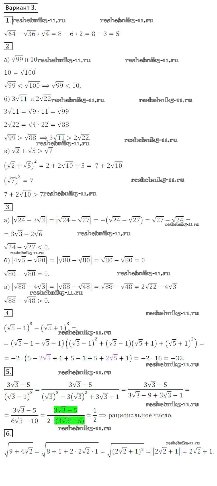 Готовая домашняя работа с ответами по Алгебре за 8 класс Потапов, Шевкин Дидактические материалы МГУ - школе Просвещение 2017 ФГОС - СР №3. Квадратный корень из числа вариант 3