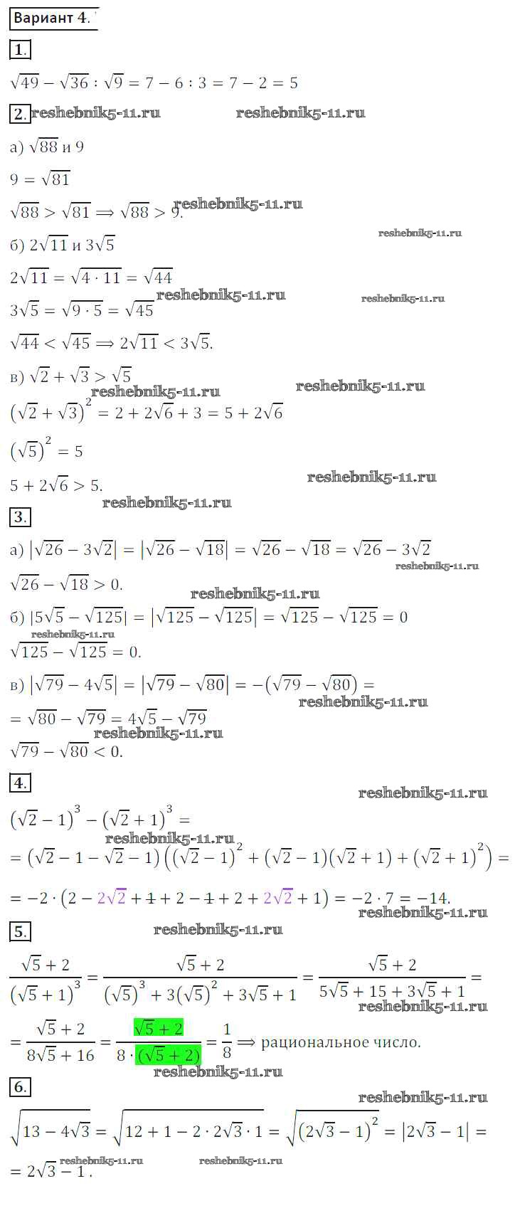 Готовая домашняя работа с ответами по Алгебре за 8 класс Потапов, Шевкин Дидактические материалы МГУ - школе Просвещение 2017 ФГОС - СР №3. Квадратный корень из числа вариант 4