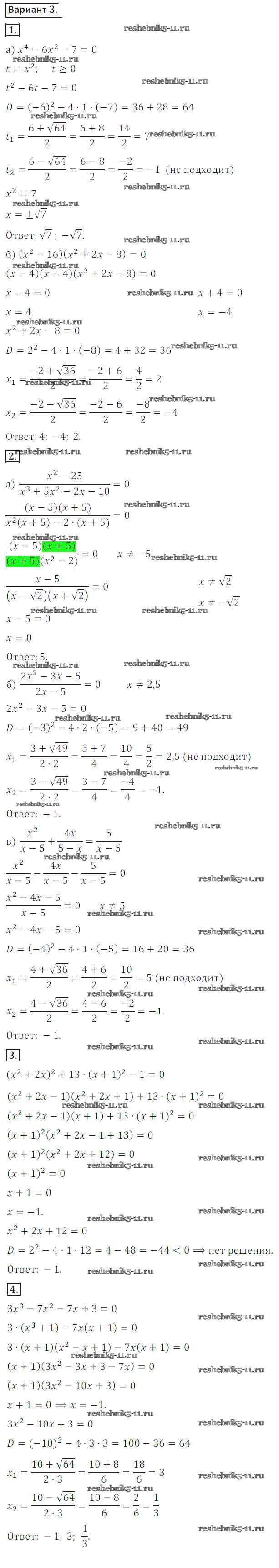 Готовая домашняя работа с ответами по Алгебре за 8 класс Потапов, Шевкин Дидактические материалы МГУ - школе Просвещение 2017 ФГОС - СР №8. Рациональные уравнения вариант 3
