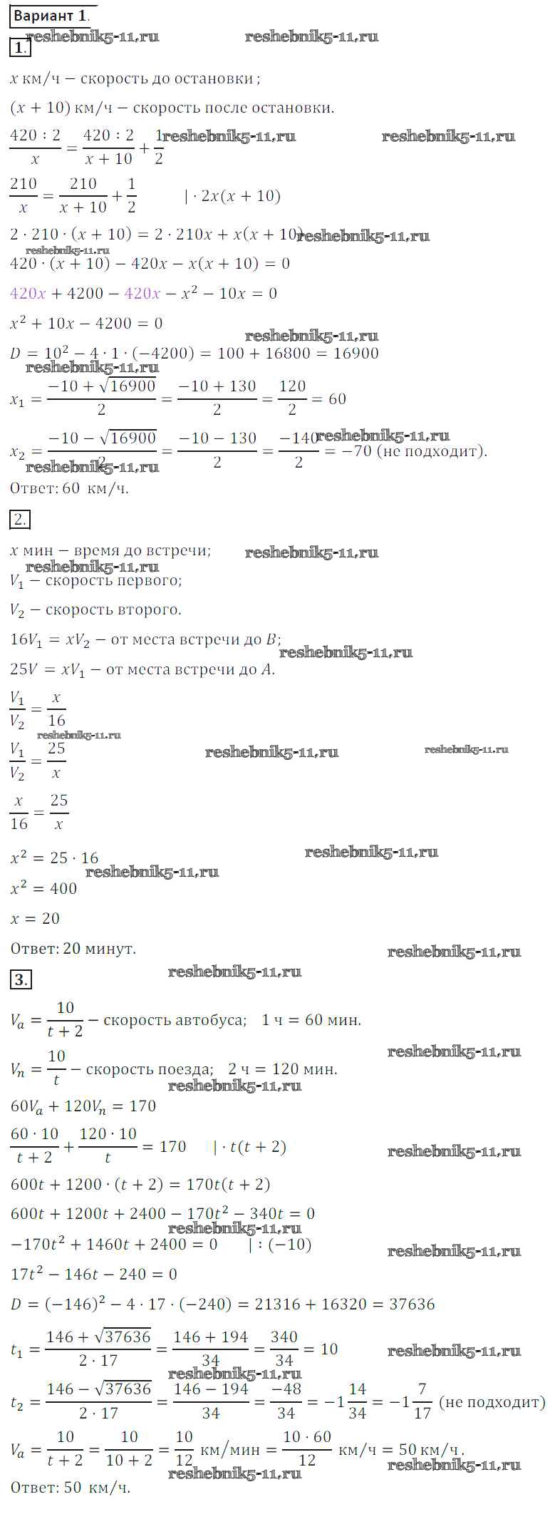 Готовая домашняя работа с ответами по Алгебре за 8 класс Потапов, Шевкин Дидактические материалы МГУ - школе Просвещение 2017 ФГОС - СР №9. Решение задач при помощи рациональных уравнений вариант 1