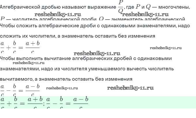§3. Сложение и вычитание алгебраических дробей с одинаковыми знаменателями