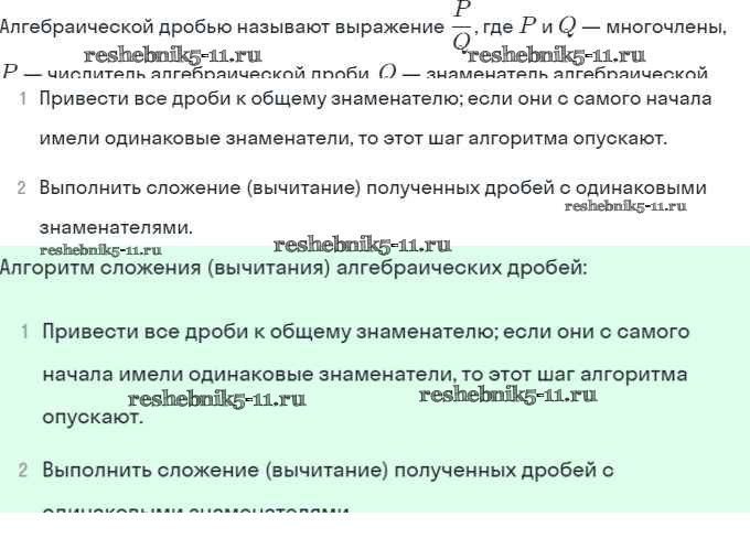 §4. Сложение и вычитание алгебраических дробей с разными знаменателями