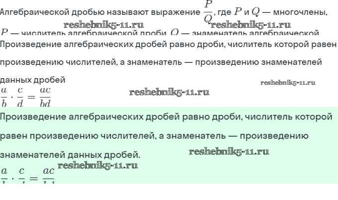 Готовая домашняя работа с ответами по Алгебре за 8 класс Мордкович Учебник Базовый уровень Мнемозина 2017 ФГОС - §5. Умножение и деление алгебраических дробей. 1