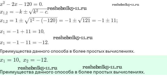 Готовая домашняя работа с ответами по Алгебре за 8 класс Мордкович Учебник Базовый уровень Мнемозина 2017 ФГОС - §31. Ещё одна формула корней квадратного уравнения 3