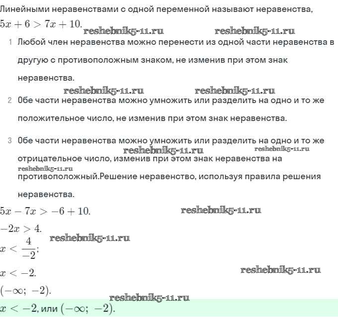 Готовая домашняя работа с ответами по Алгебре за 8 класс Мордкович Учебник Базовый уровень Мнемозина 2017 ФГОС - §36. Решение линейных неравенств 3