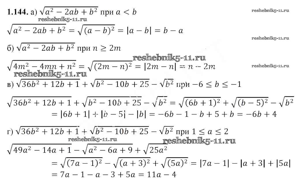 Готовая домашняя работа с ответами по Алгебре за 8 класс Арефьева, Пирютко Учебник Народная асвета 2018 ФГОС - Упражнения 1.144