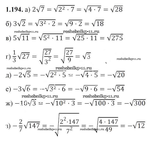 Готовая домашняя работа с ответами по Алгебре за 8 класс Арефьева, Пирютко Учебник Народная асвета 2018 ФГОС - Упражнения 1.194