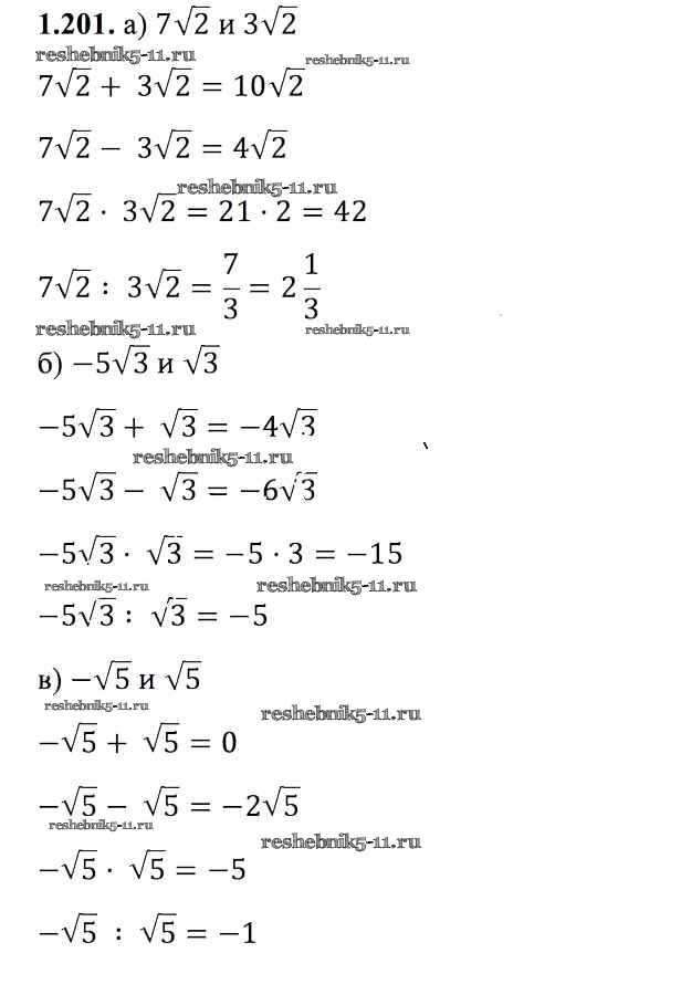 Готовая домашняя работа с ответами по Алгебре за 8 класс Арефьева, Пирютко Учебник Народная асвета 2018 ФГОС - Упражнения 1.201