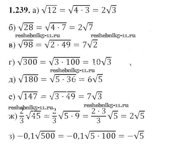 Готовая домашняя работа с ответами по Алгебре за 8 класс Арефьева, Пирютко Учебник Народная асвета 2018 ФГОС - Упражнения 1.239