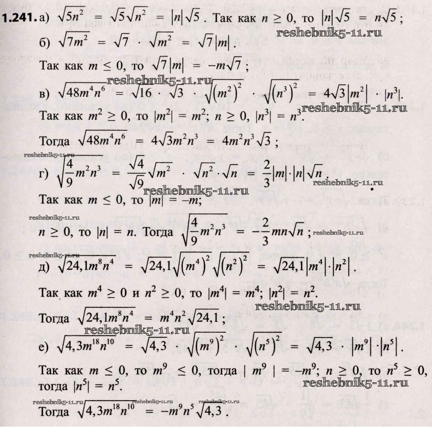 Готовая домашняя работа с ответами по Алгебре за 8 класс Арефьева, Пирютко Учебник Народная асвета 2018 ФГОС - Упражнения 1.241
