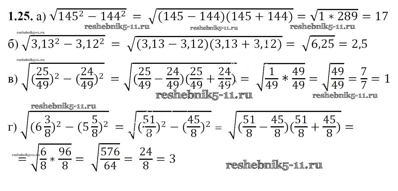 Готовая домашняя работа с ответами по Алгебре за 8 класс Арефьева, Пирютко Учебник Народная асвета 2018 ФГОС - Упражнения 1.25