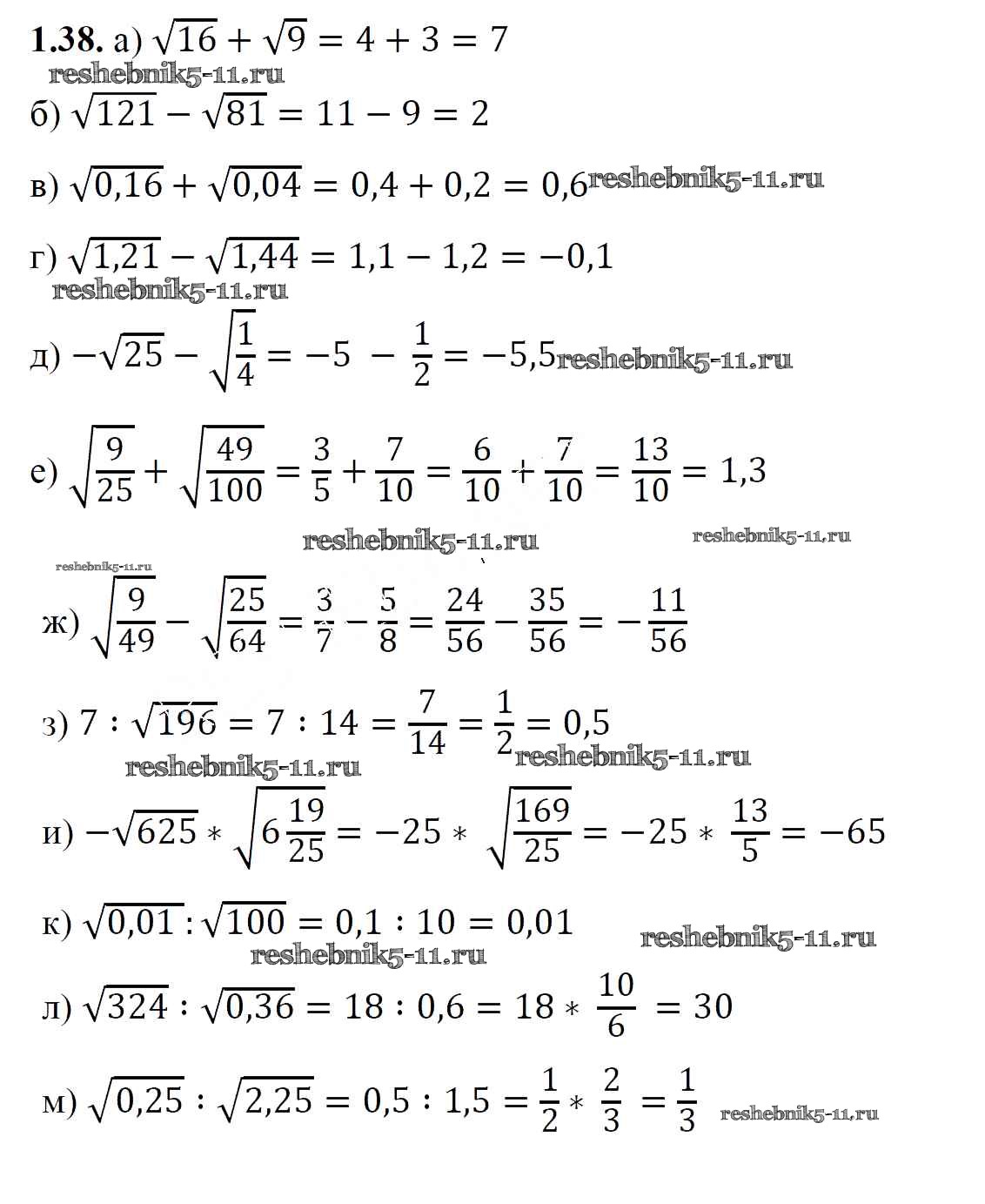 Готовая домашняя работа с ответами по Алгебре за 8 класс Арефьева, Пирютко Учебник Народная асвета 2018 ФГОС - Упражнения 1.38