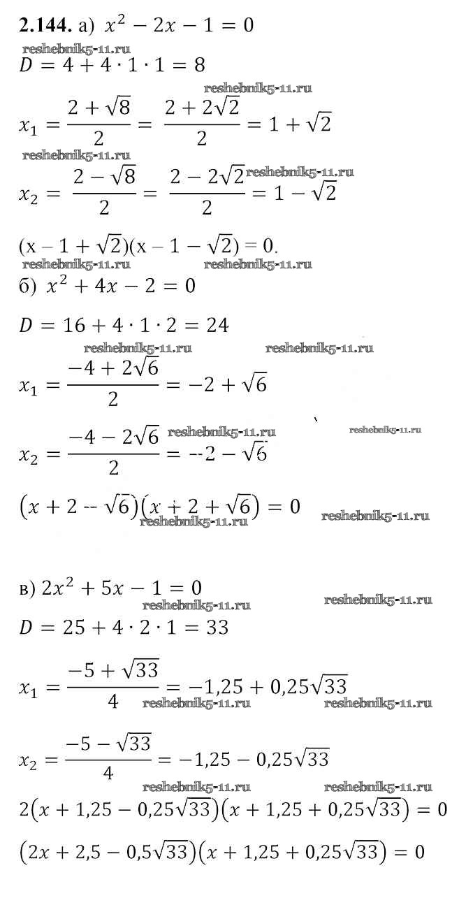 Готовая домашняя работа с ответами по Алгебре за 8 класс Арефьева, Пирютко Учебник Народная асвета 2018 ФГОС - Упражнения 2.144