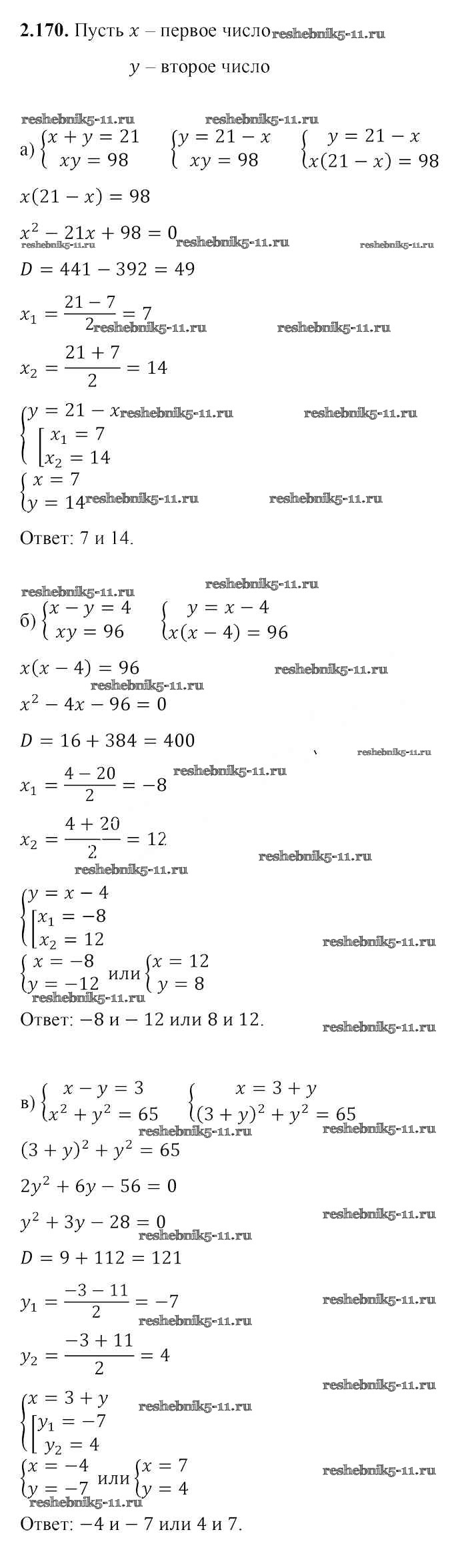 Готовая домашняя работа с ответами по Алгебре за 8 класс Арефьева, Пирютко Учебник Народная асвета 2018 ФГОС - Упражнения 2.170