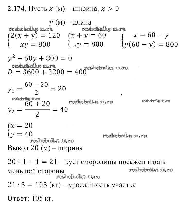 Готовая домашняя работа с ответами по Алгебре за 8 класс Арефьева, Пирютко Учебник Народная асвета 2018 ФГОС - Упражнения 2.174