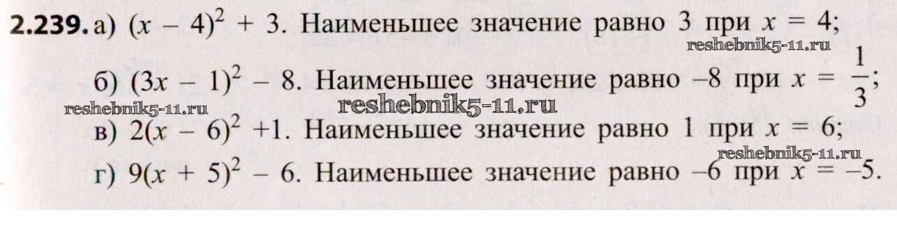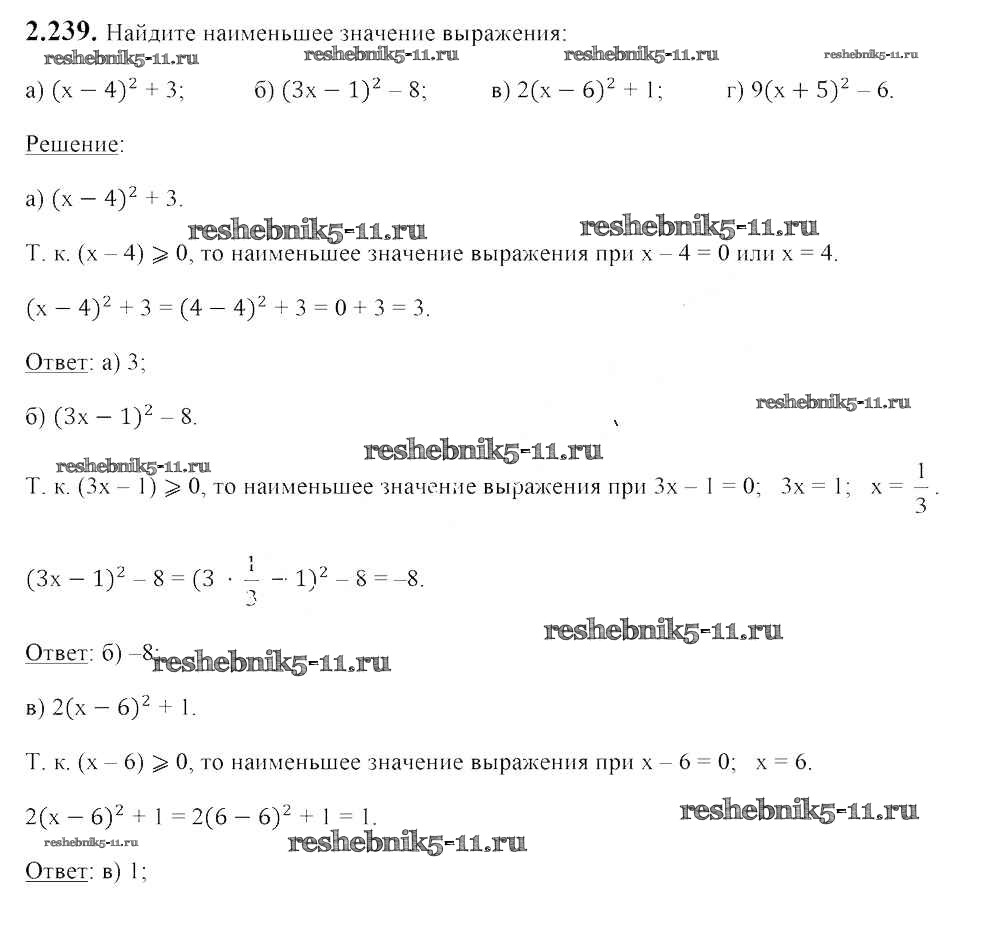 Готовая домашняя работа с ответами по Алгебре за 8 класс Арефьева, Пирютко Учебник Народная асвета 2018 ФГОС - Упражнения 2.239