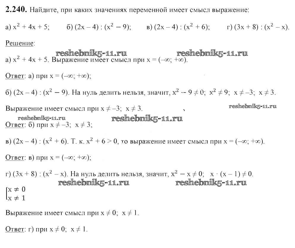 Готовая домашняя работа с ответами по Алгебре за 8 класс Арефьева, Пирютко Учебник Народная асвета 2018 ФГОС - Упражнения 2.240