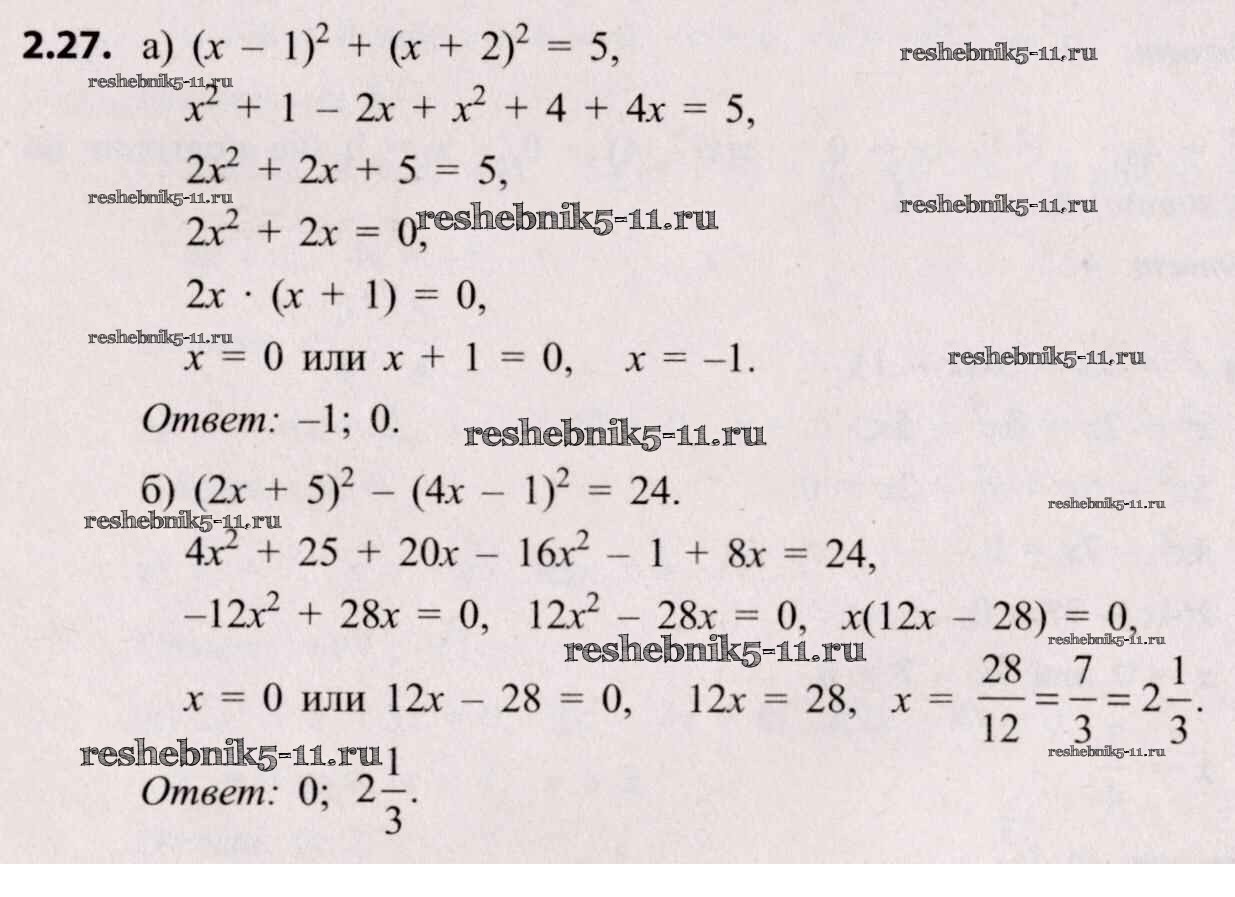 Готовая домашняя работа с ответами по Алгебре за 8 класс Арефьева, Пирютко Учебник Народная асвета 2018 ФГОС - Упражнения 2.27
