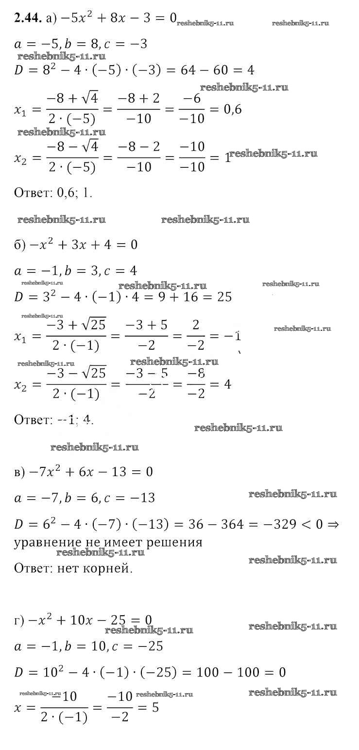 Готовая домашняя работа с ответами по Алгебре за 8 класс Арефьева, Пирютко Учебник Народная асвета 2018 ФГОС - Упражнения 2.44