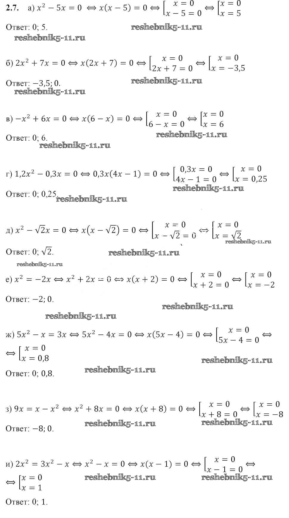 Готовая домашняя работа с ответами по Алгебре за 8 класс Арефьева, Пирютко Учебник Народная асвета 2018 ФГОС - Упражнения 2.7