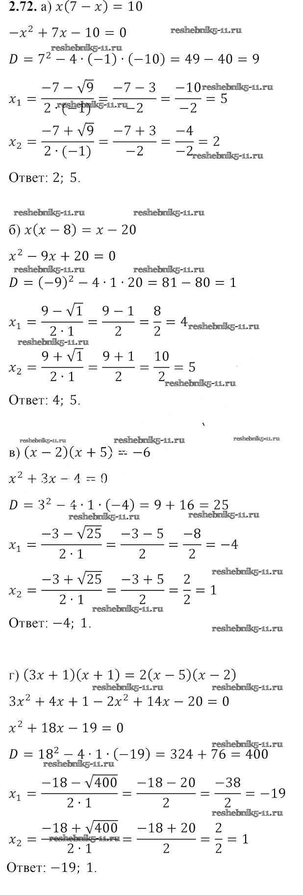 Готовая домашняя работа с ответами по Алгебре за 8 класс Арефьева, Пирютко Учебник Народная асвета 2018 ФГОС - Упражнения 2.72
