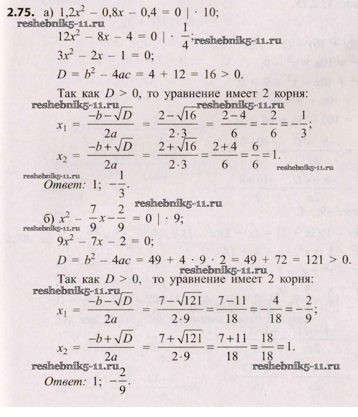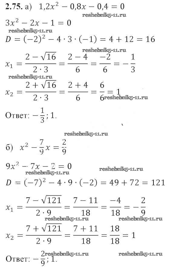 Готовая домашняя работа с ответами по Алгебре за 8 класс Арефьева, Пирютко Учебник Народная асвета 2018 ФГОС - Упражнения 2.75