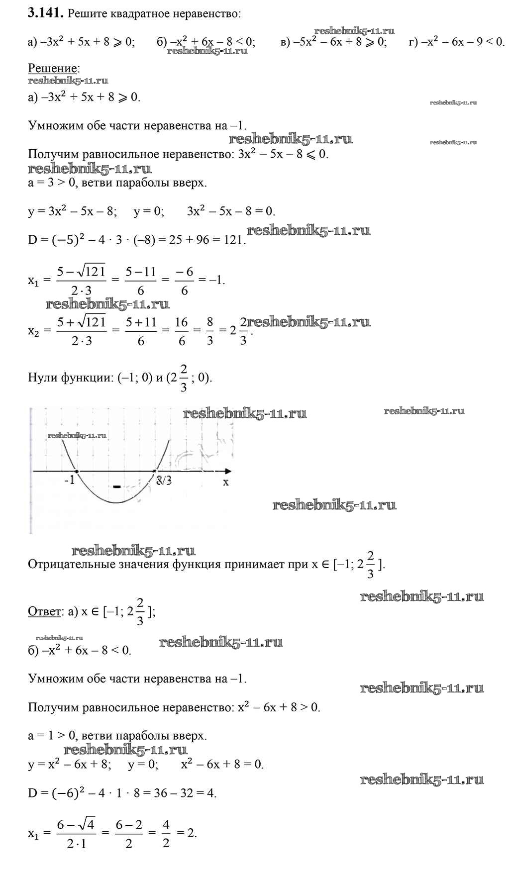 Готовая домашняя работа с ответами по Алгебре за 8 класс Арефьева, Пирютко Учебник Народная асвета 2018 ФГОС - Упражнения 3.141
