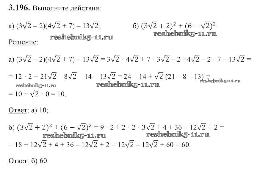 Готовая домашняя работа с ответами по Алгебре за 8 класс Арефьева, Пирютко Учебник Народная асвета 2018 ФГОС - Упражнения 3.196