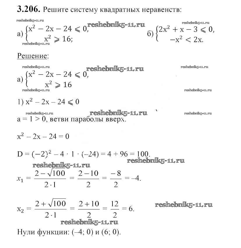 Готовая домашняя работа с ответами по Алгебре за 8 класс Арефьева, Пирютко Учебник Народная асвета 2018 ФГОС - Упражнения 3.206