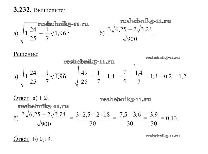 Готовая домашняя работа с ответами по Алгебре за 8 класс Арефьева, Пирютко Учебник Народная асвета 2018 ФГОС - Упражнения 3.232