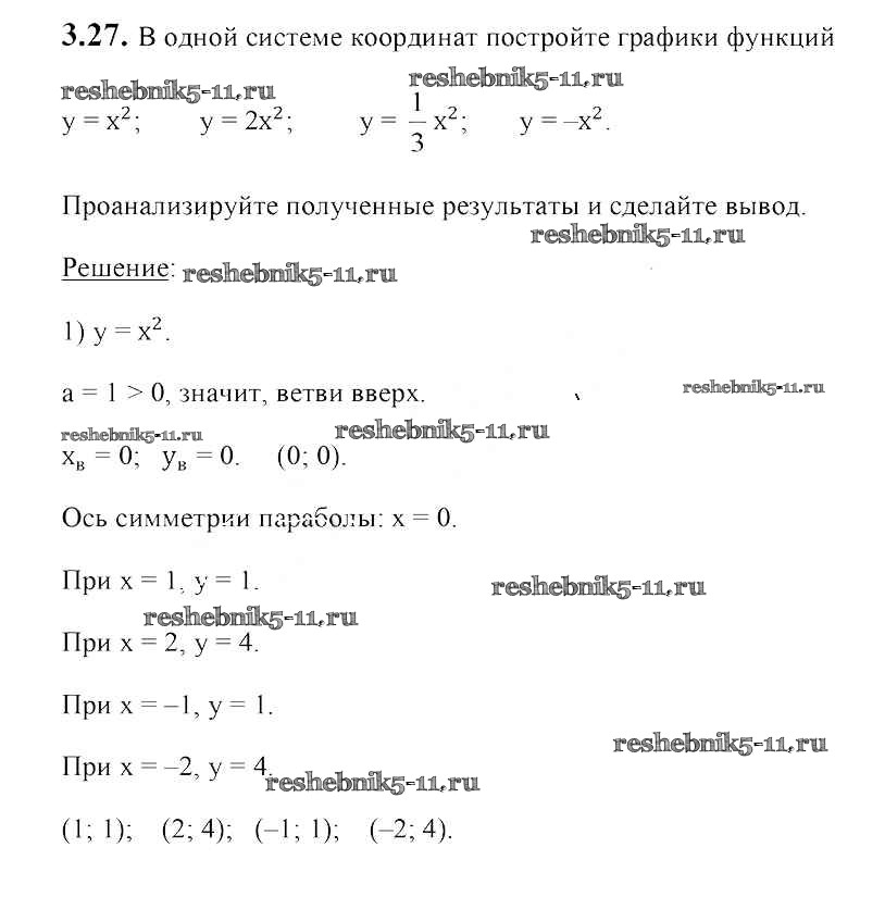 Готовая домашняя работа с ответами по Алгебре за 8 класс Арефьева, Пирютко Учебник Народная асвета 2018 ФГОС - Упражнения 3.27
