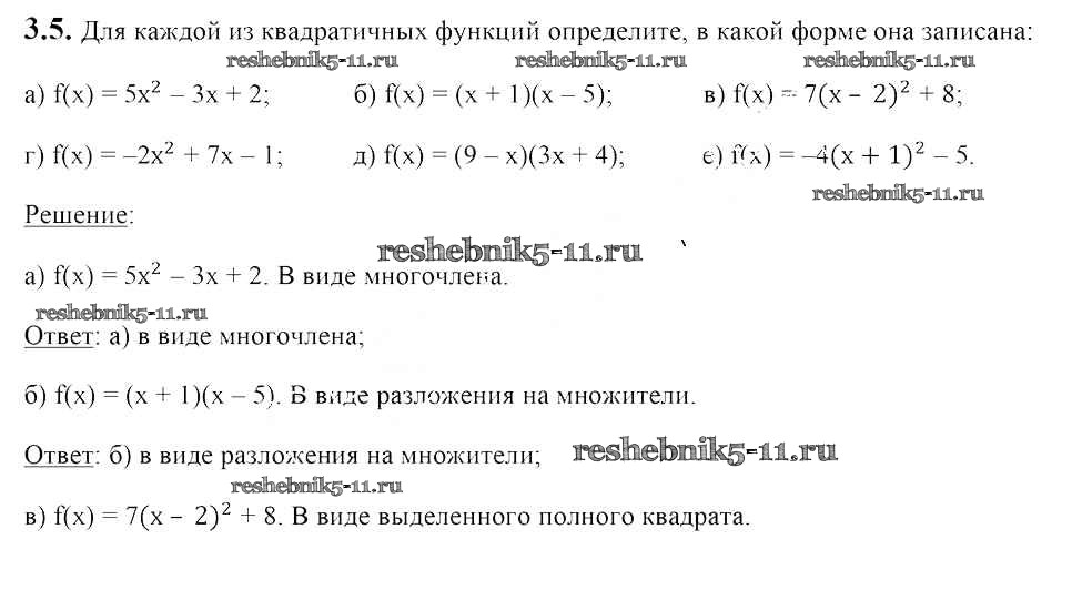 Готовая домашняя работа с ответами по Алгебре за 8 класс Арефьева, Пирютко Учебник Народная асвета 2018 ФГОС - Упражнения 3.5