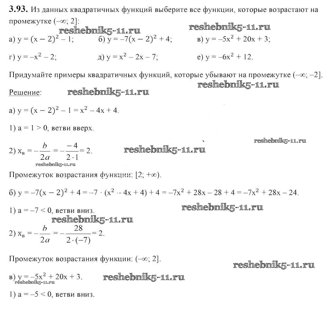 Готовая домашняя работа с ответами по Алгебре за 8 класс Арефьева, Пирютко Учебник Народная асвета 2018 ФГОС - Упражнения 3.93