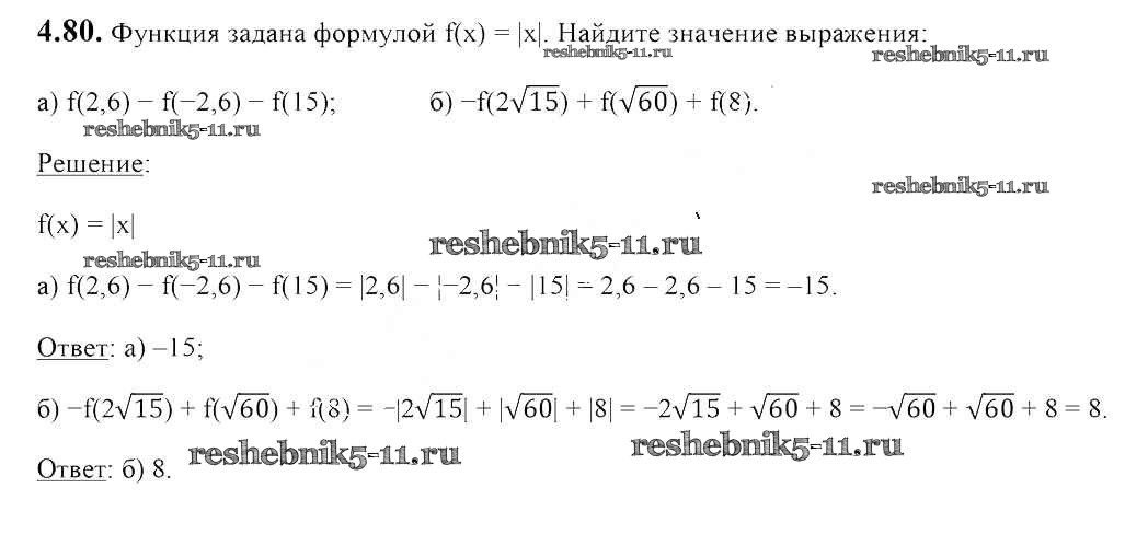 Готовая домашняя работа с ответами по Алгебре за 8 класс Арефьева, Пирютко Учебник Народная асвета 2018 ФГОС - Упражнения 4.80