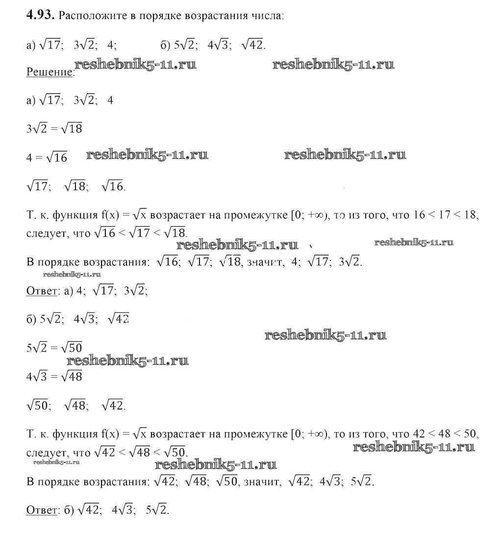 Готовая домашняя работа с ответами по Алгебре за 8 класс Арефьева, Пирютко Учебник Народная асвета 2018 ФГОС - Упражнения 4.93