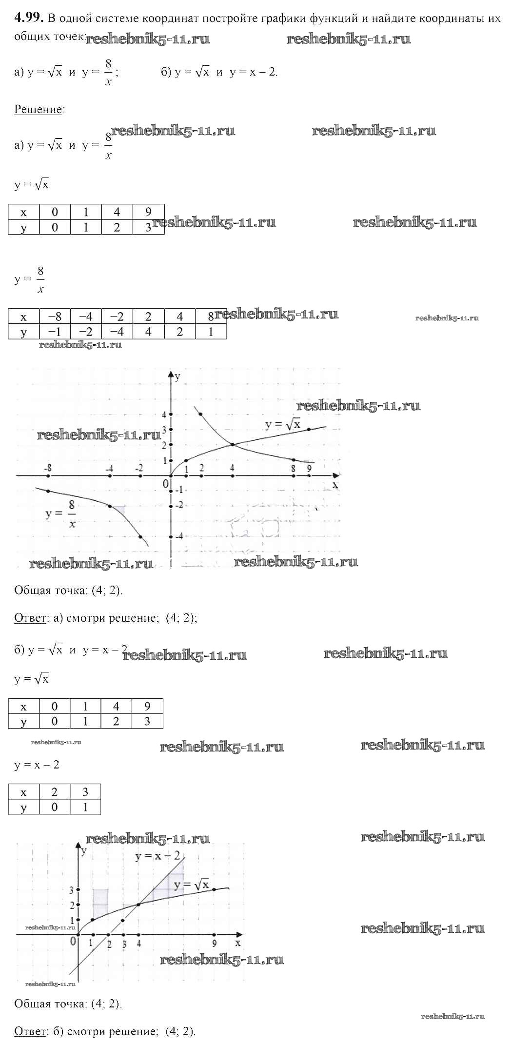 Готовая домашняя работа с ответами по Алгебре за 8 класс Арефьева, Пирютко Учебник Народная асвета 2018 ФГОС - Упражнения 4.99