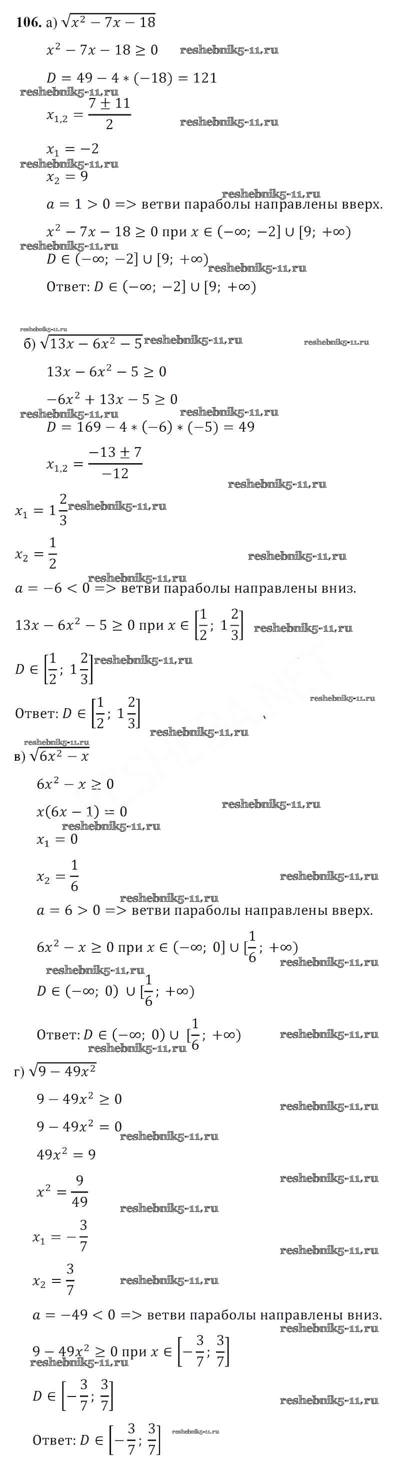 Готовая домашняя работа с ответами по Алгебре за 8 класс Арефьева, Пирютко Учебник Народная асвета 2018 ФГОС - Повторение 106