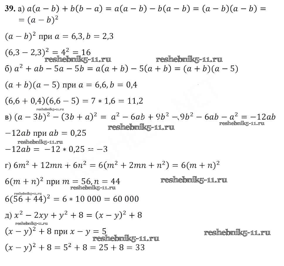 Готовая домашняя работа с ответами по Алгебре за 8 класс Арефьева, Пирютко Учебник Народная асвета 2018 ФГОС - Повторение 39