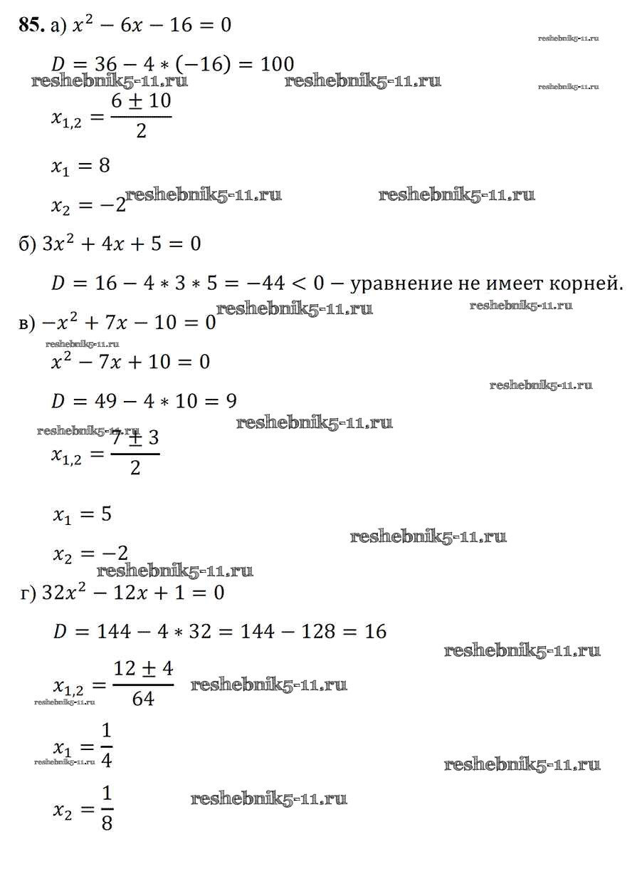 Готовая домашняя работа с ответами по Алгебре за 8 класс Арефьева, Пирютко Учебник Народная асвета 2018 ФГОС - Повторение 85
