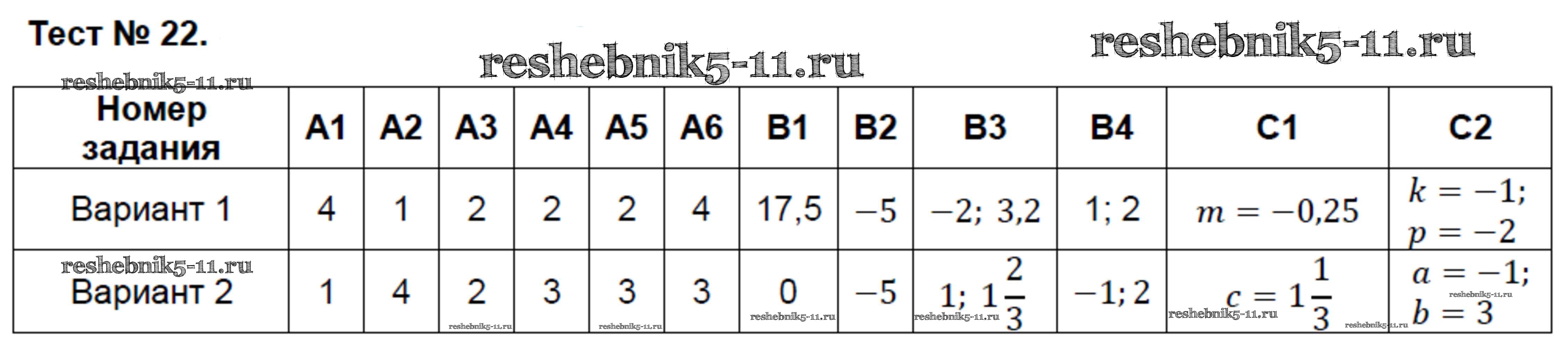 Готовая домашняя работа с ответами по Алгебре за 8 класс Черноруцкий Контрольно-измерительные материалы (КИМ) ВАКО 2018 ФГОС - Тесты 22