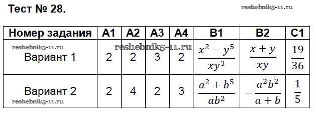 Готовая домашняя работа с ответами по Алгебре за 8 класс Черноруцкий Контрольно-измерительные материалы (КИМ) ВАКО 2018 ФГОС - Тесты 28
