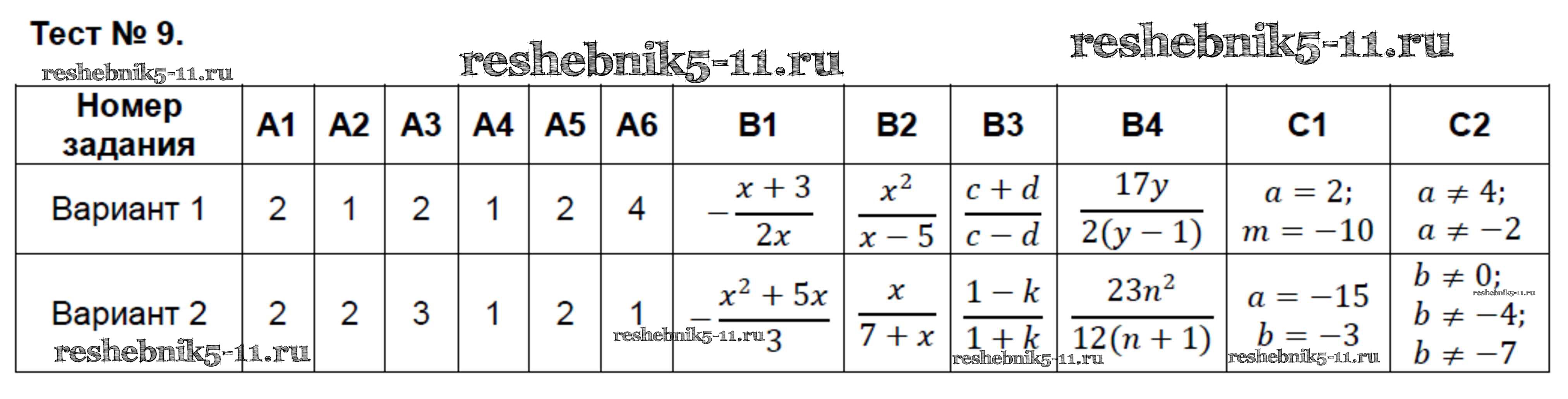 Готовая домашняя работа с ответами по Алгебре за 8 класс Черноруцкий Контрольно-измерительные материалы (КИМ) ВАКО 2018 ФГОС - Тесты 9