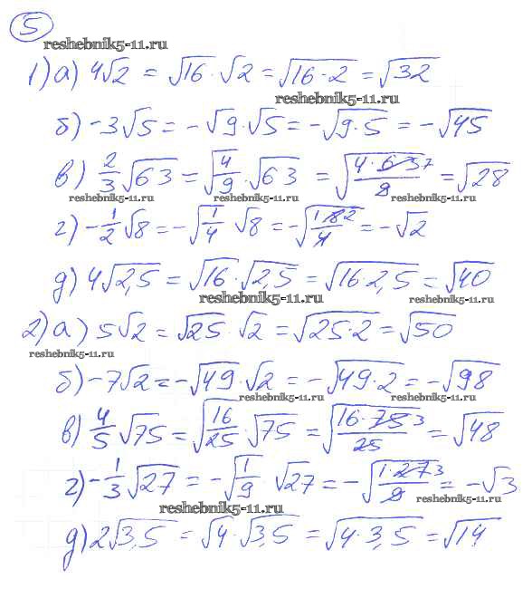 Готовая домашняя работа с ответами по Алгебре за 8 класс Евстафьева, Карп Дидактические материалы Просвещение 2017 ФГОС - О-13. Свойства квадратного корня 5