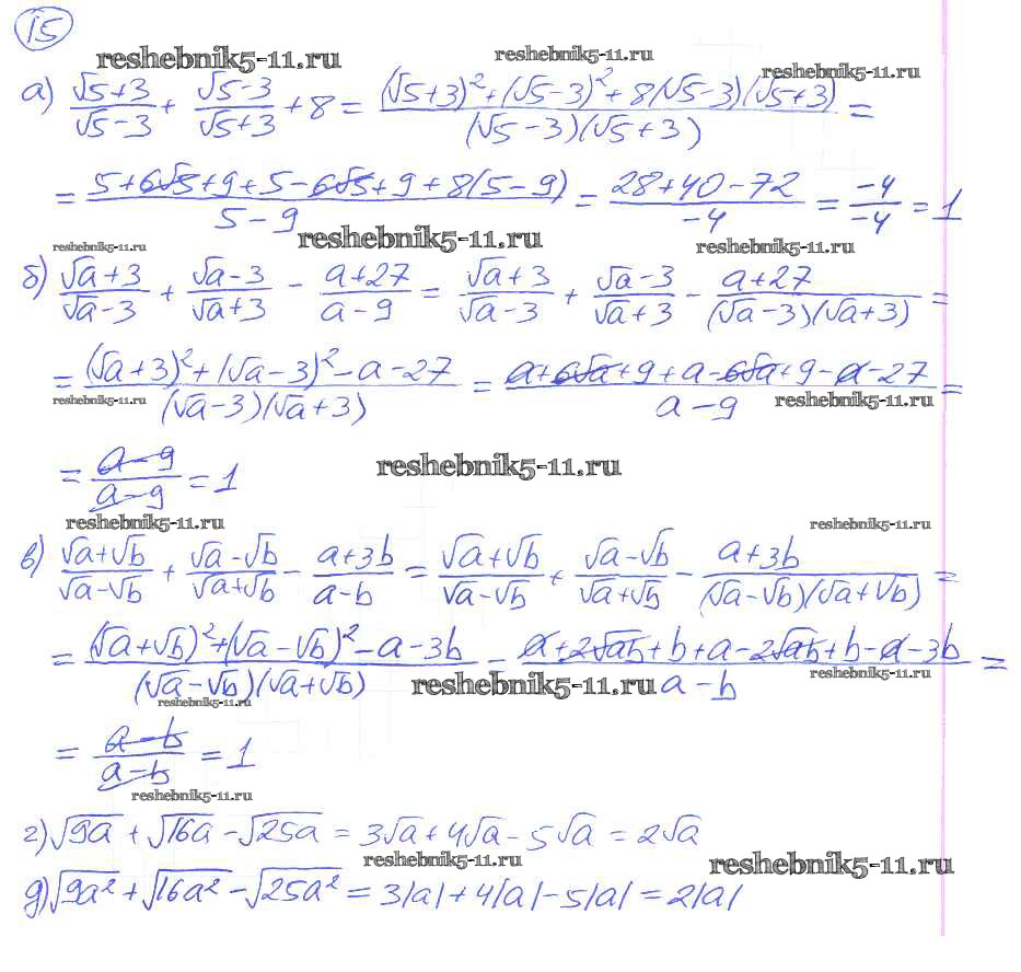 Готовая домашняя работа с ответами по Алгебре за 8 класс Евстафьева, Карп Дидактические материалы Просвещение 2017 ФГОС - О-14. Преобразование выражений, содержащих квадратные корни 15