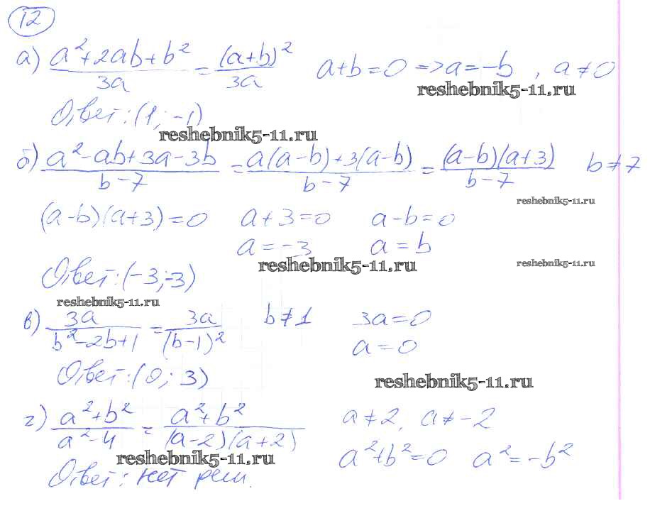 Готовая домашняя работа с ответами по Алгебре за 8 класс Евстафьева, Карп Дидактические материалы Просвещение 2017 ФГОС - О-2. Алгебраические дроби 12