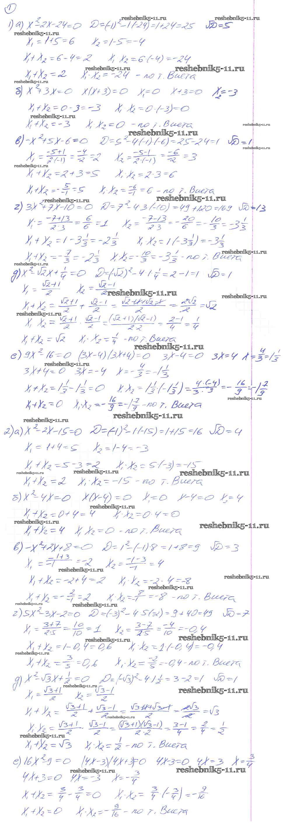 Готовая домашняя работа с ответами по Алгебре за 8 класс Евстафьева, Карп Дидактические материалы Просвещение 2017 ФГОС - О-21. Теорема Виета 1