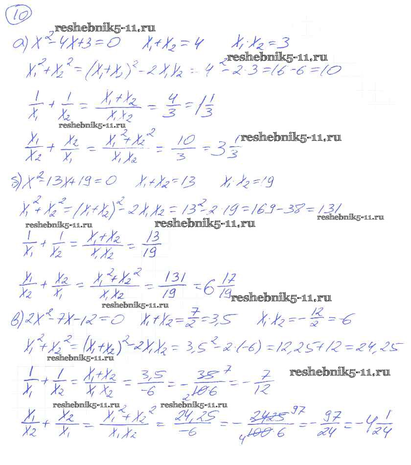 Готовая домашняя работа с ответами по Алгебре за 8 класс Евстафьева, Карп Дидактические материалы Просвещение 2017 ФГОС - О-21. Теорема Виета 10